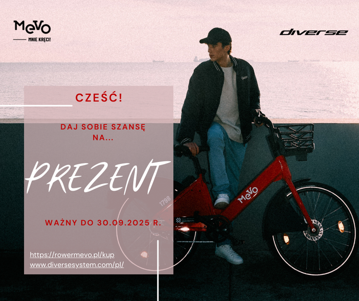 2. Kup abonament MEVO i wyślij potwierdzenie na mevo@metropoliagdansk.pl -dostaniesz kod -20% na zakupy w Diverse online.