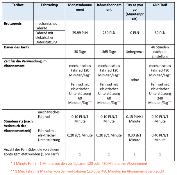 4) Nutzung eigener Fahrradschlösser – 200 PLN;