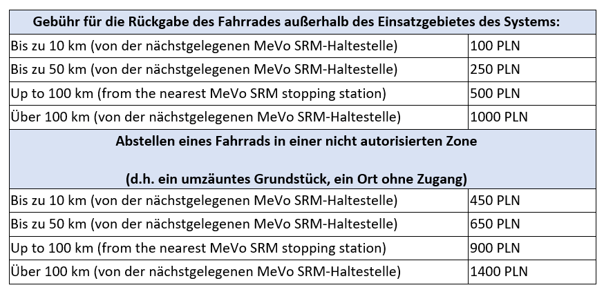 2) Abstellen des Fahrrads in einer verbotenen Zone (d. h. an allen für den Service unzugänglichen Orten) – 450 PLN;